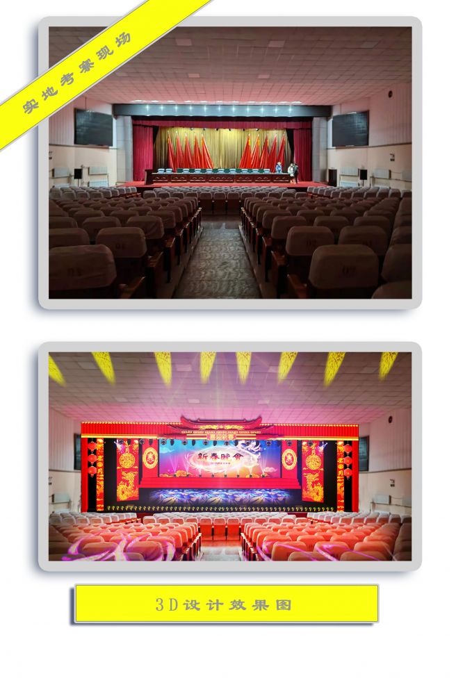 我们的设计理念是结合武川县的地域文化特色,打造一个既现代又具有传统韵味的舞台。设计中融入了当地民族元素和春节的喜庆色彩,旨在营造一个温馨、热烈、富有节日气氛的演出环境。